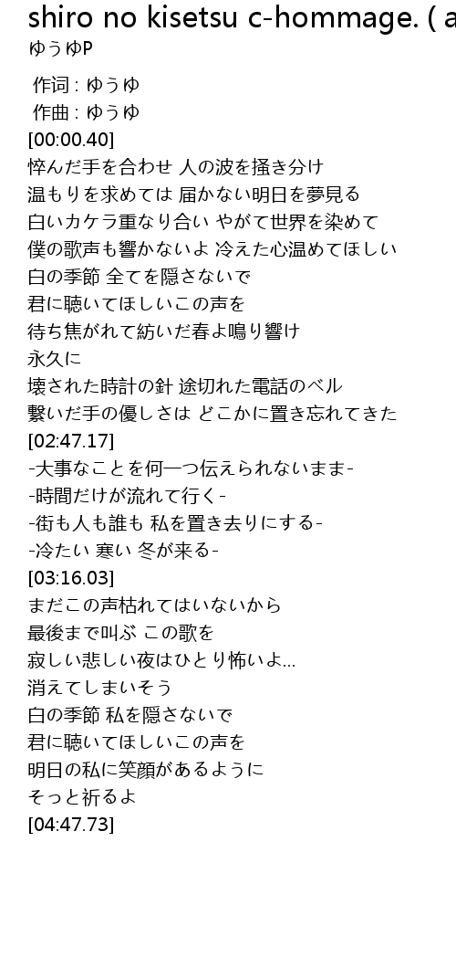 | [01:55.44] | 白の季節 全てを隠さないで |
