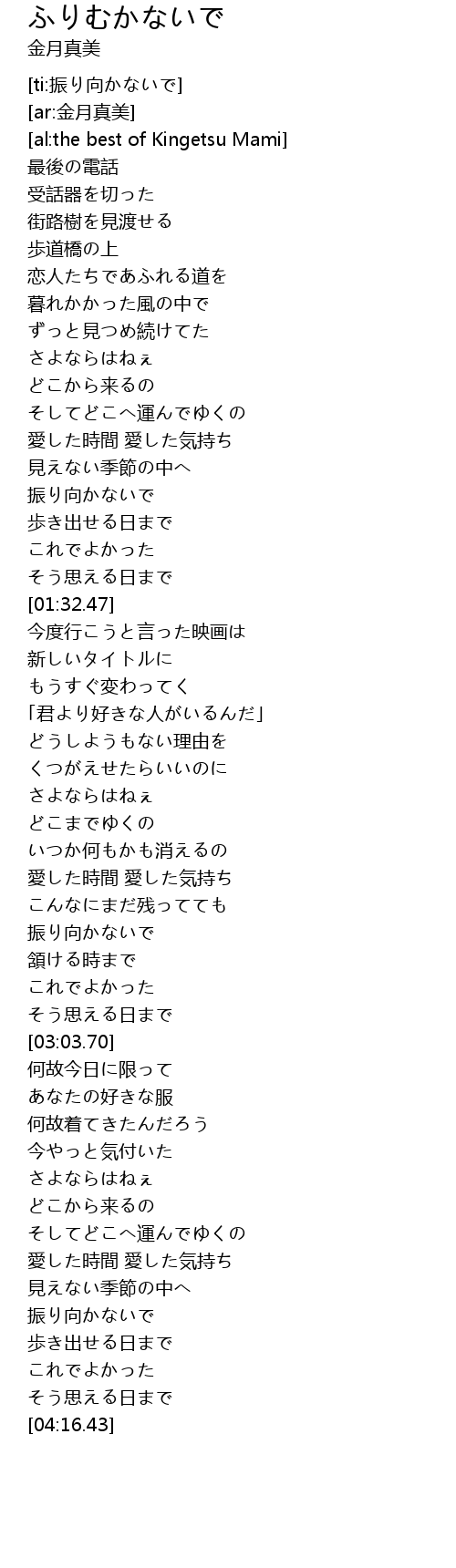 | [01:05.57] | 愛した時間 愛した気持ち |