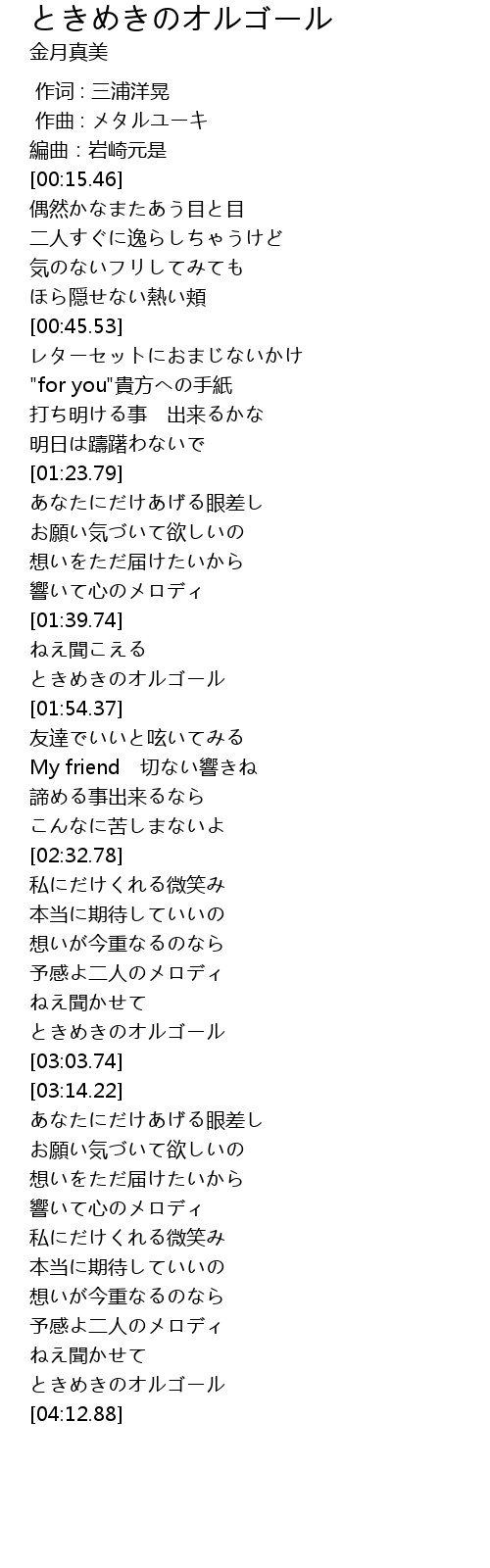 | [00:15.52] | 偶然かなまたあう目と目 |