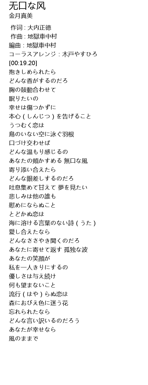 | [01:19.08] | 本心(しんじつ)を告げること |