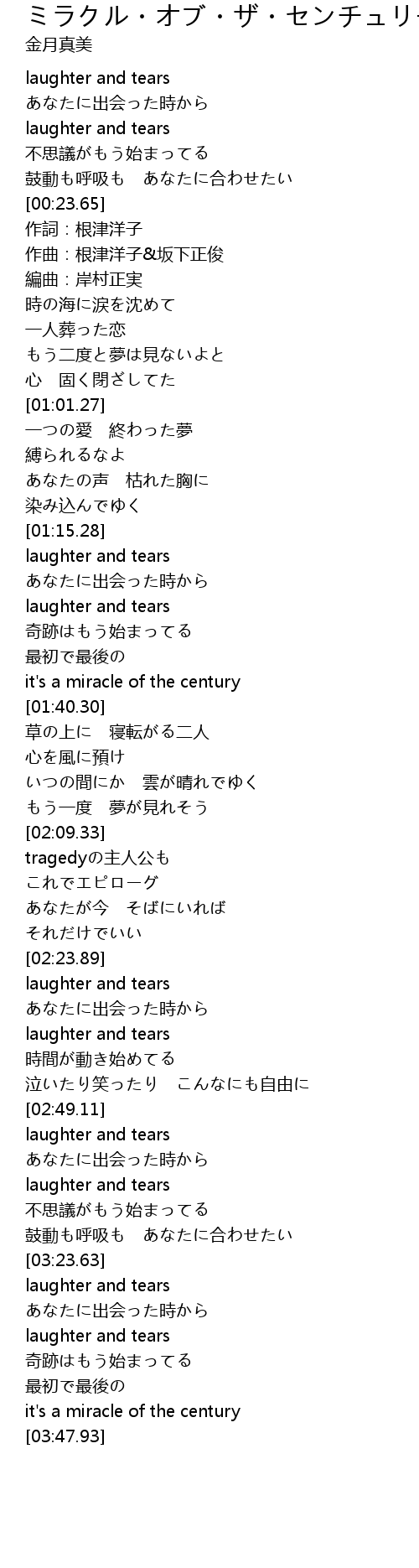 | [03:41.21] | it' s a miracle of the century |