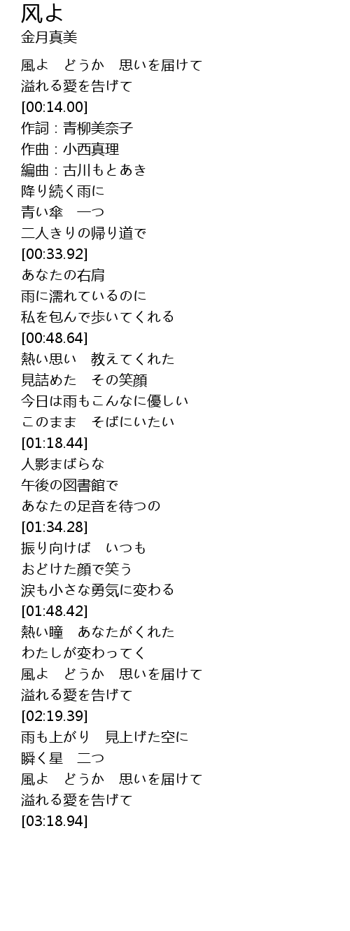| [03:03.45] | 風よ どうか 思いを届けて |