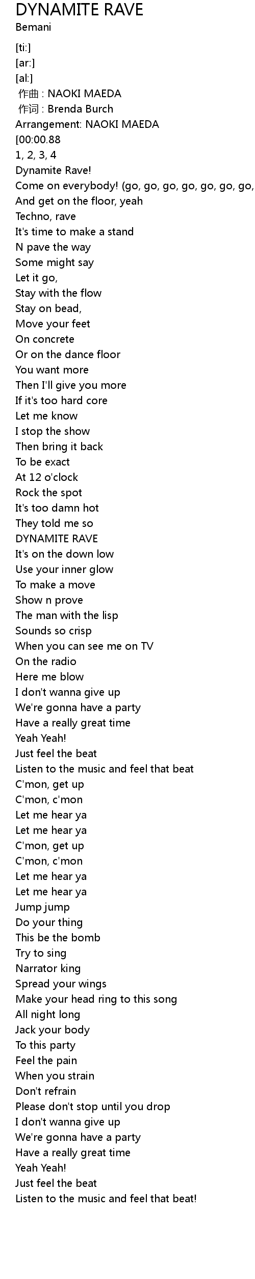 | [00:07.13] | Come on everybody! go, go, go, go, go, go, go, go |