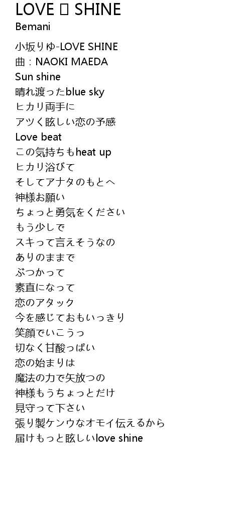 | [00:00.00] | 小坂りゆ-LOVE SHINE |