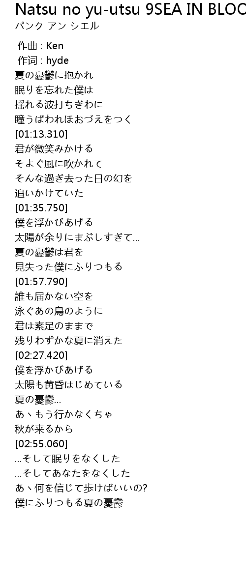 | [01:47.600] | 夏の憂鬱は君を |