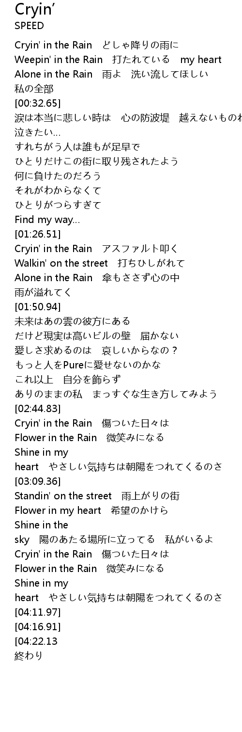 | [02:45.13] | Cryin' in the Rain 傷ついた日々は |