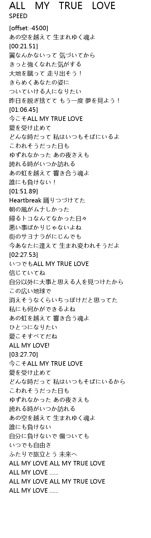 | [04:53.51] | ALL MY LOVE ALL MY TRUE LOVE |