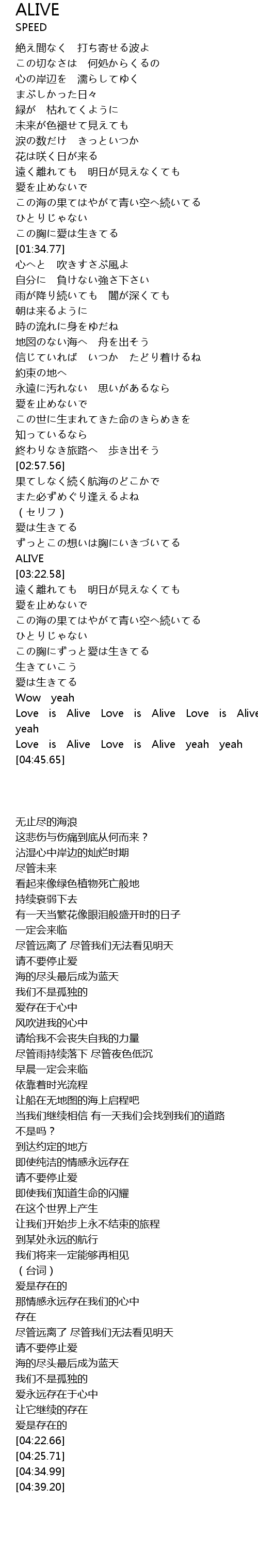 | [04:39.20] | Love is Alive Love is Alive yeah yeah |