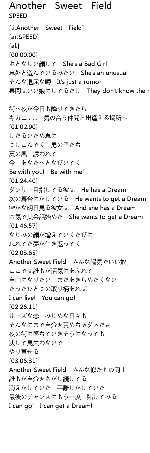 | [03:06.70] | Another Sweet Field shì tóng shì |