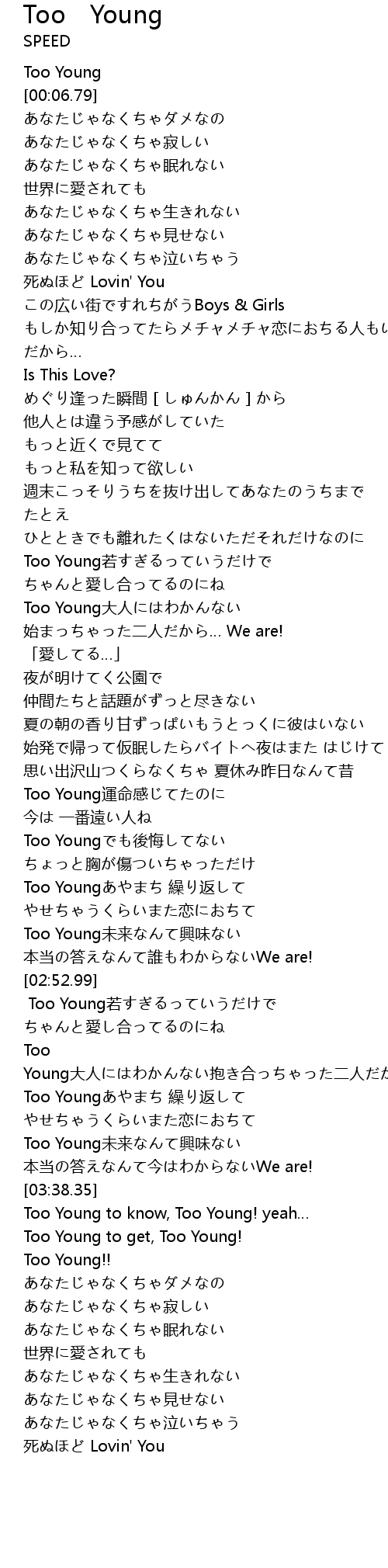| [02:35.16] | Too Youngあやまち 繰り返して |