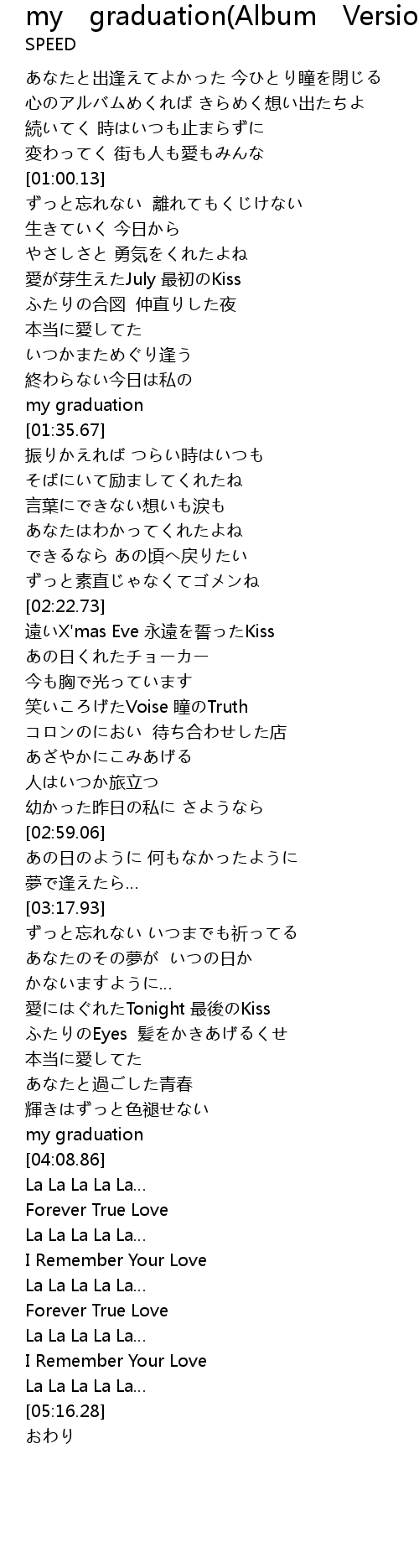 | [03:30.85] | ずっと忘れない いつまでも祈ってる |