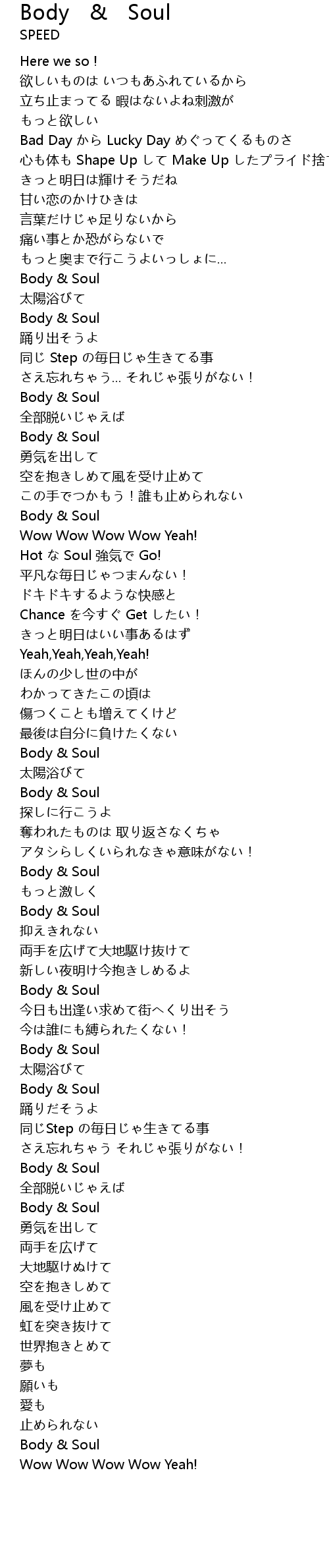| [01:55.13] | Hot な Soul 強気で Go! |