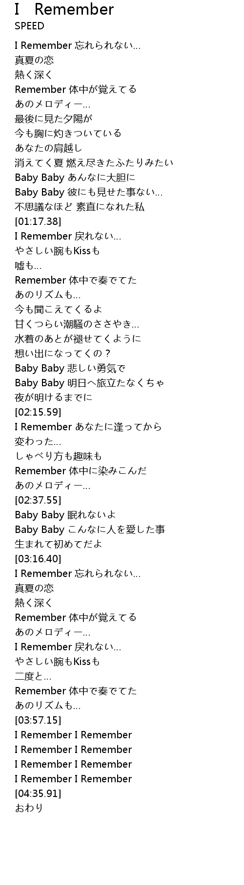 I Remember 忘れられない… |