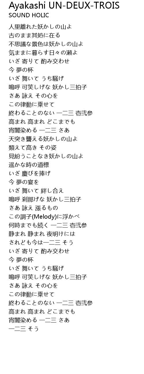 | Song | Ayakashi UN-DEUX-TROIS |