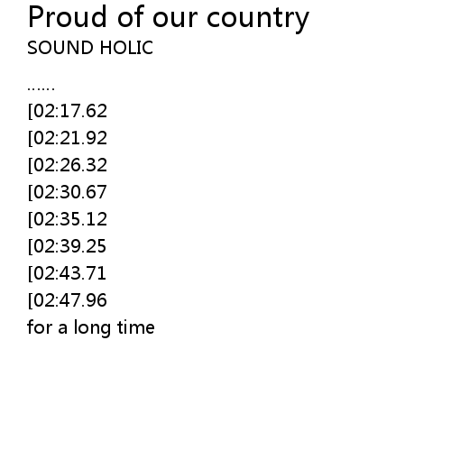 | [00:39.01][02:39.25][02:56.57] | I' m proud of our country so |