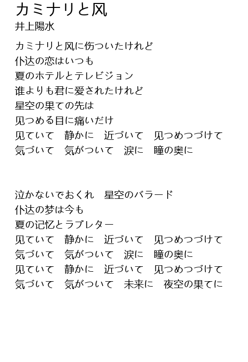 | 気づいて 気がついて 未来に 夜空の果てに |