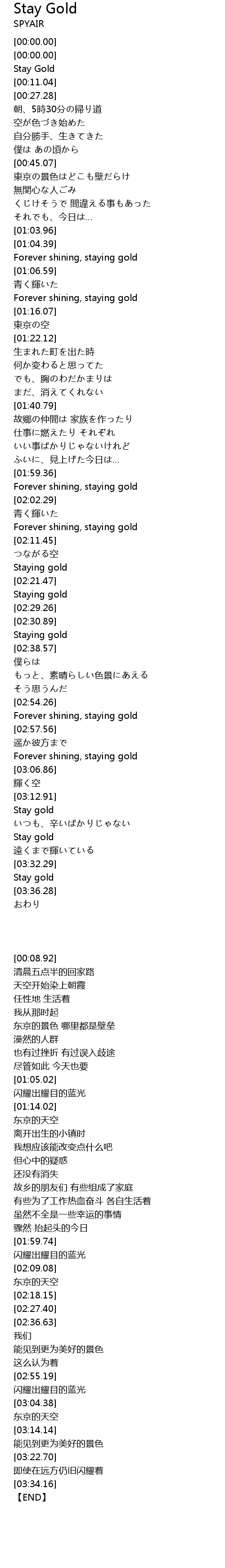 | [03:34.16] | Stay gold |