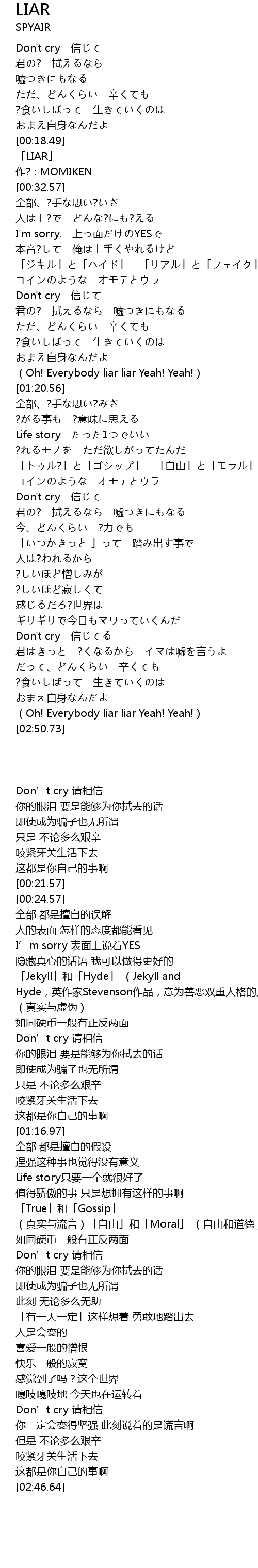 | [02:46.64] | (Oh! Everybody liar liar Yeah! Yeah!) |