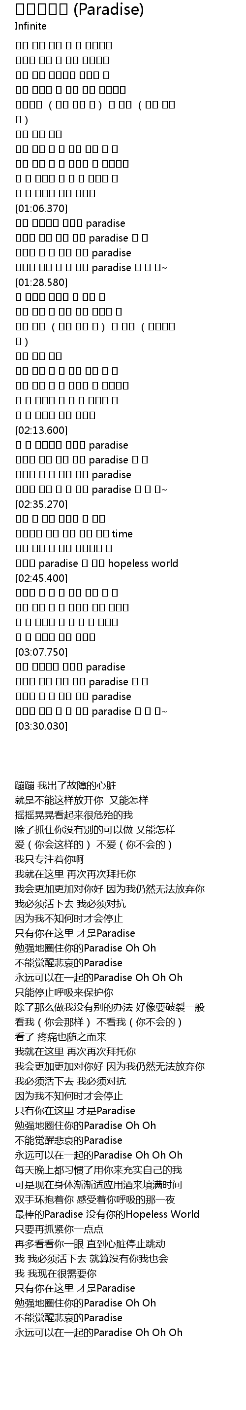 | [03:24.190] | 영원히 함께 할 수 있는 paradise 오 오 오~ |
