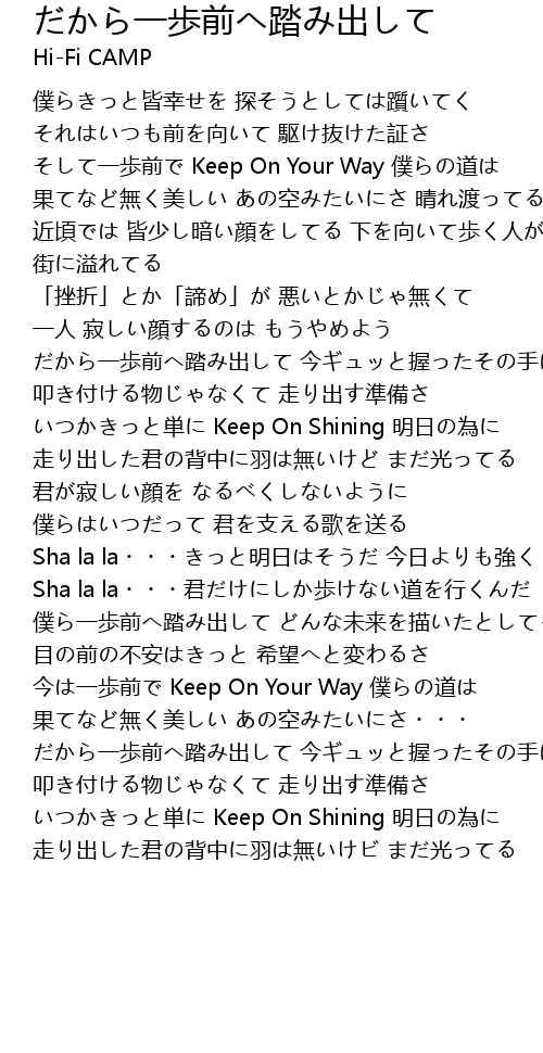 | 今は一歩前で Keep On Your Way 僕らの道は | |
