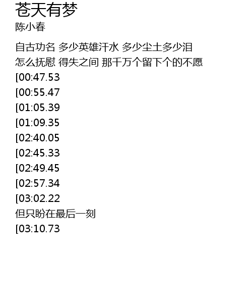 | [03:16.62][02:40.05][01:16.82] | cang tian you meng ri yue xing chen wei meng |