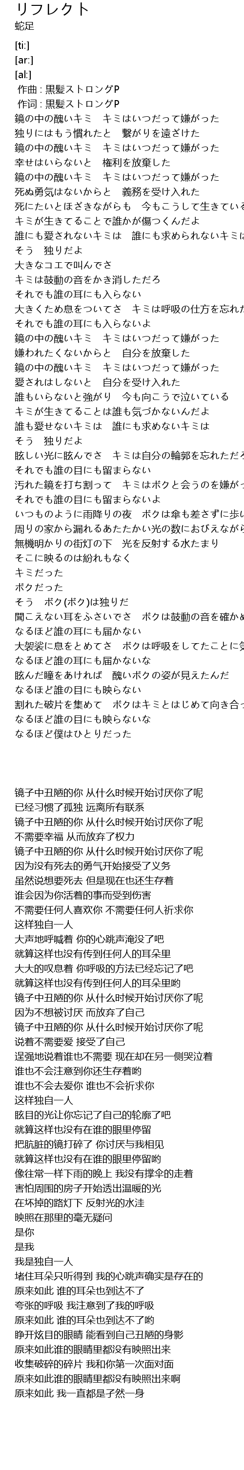 | [02:13.84] | 鏡の中の醜いキミ キミはいつだって嫌がった |