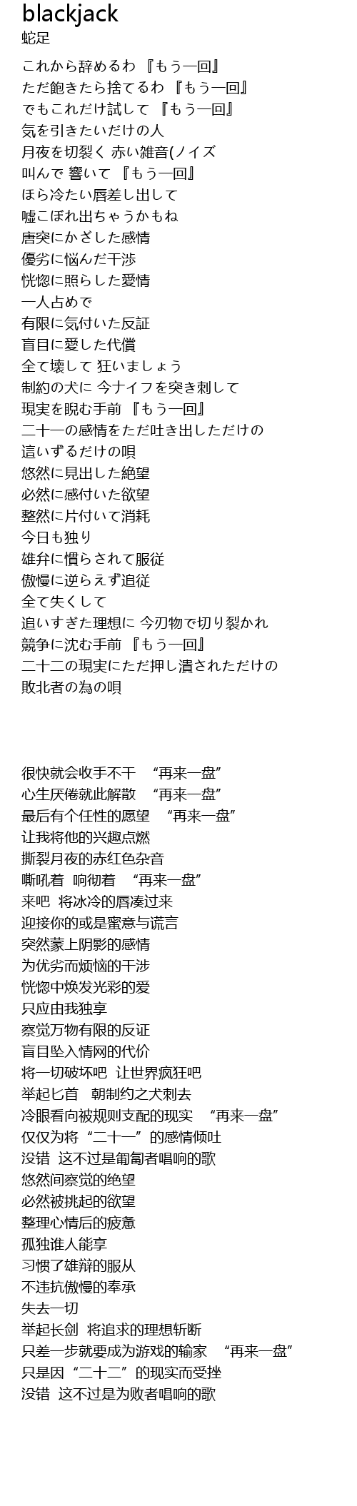 | [00:59.18] | 制約の犬に 今ナイフを突き刺して |