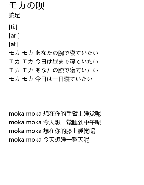 | [00:17.24] | モカ モカ あなたの膝で寝ていたい |