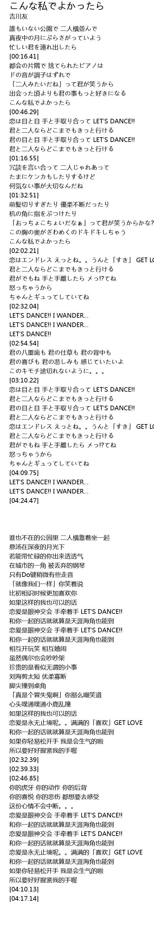 | [02:32.39] | LET' S DANCE!! I WANDER |