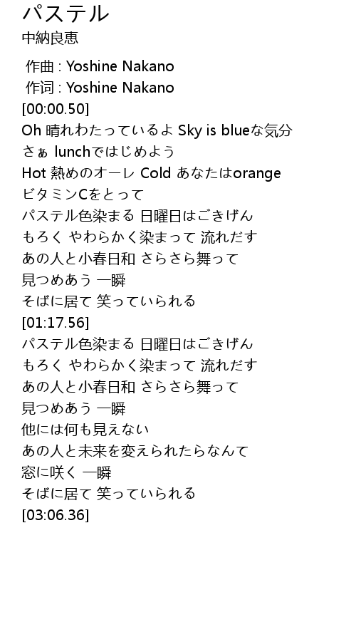 | [02:04.43] | パステル色染まる 日曜日はごきげん |