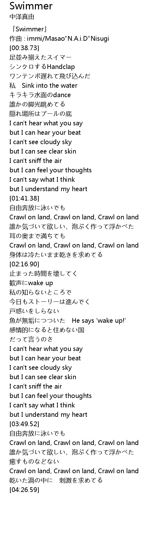 | [00:01.73] | 「Swimmer」 |