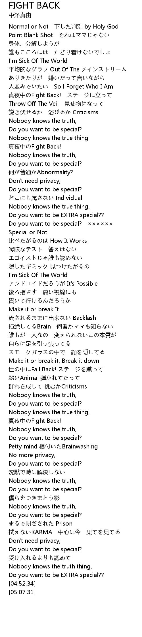 | [03:56.33] | zhen ye zhong Fight Back! |