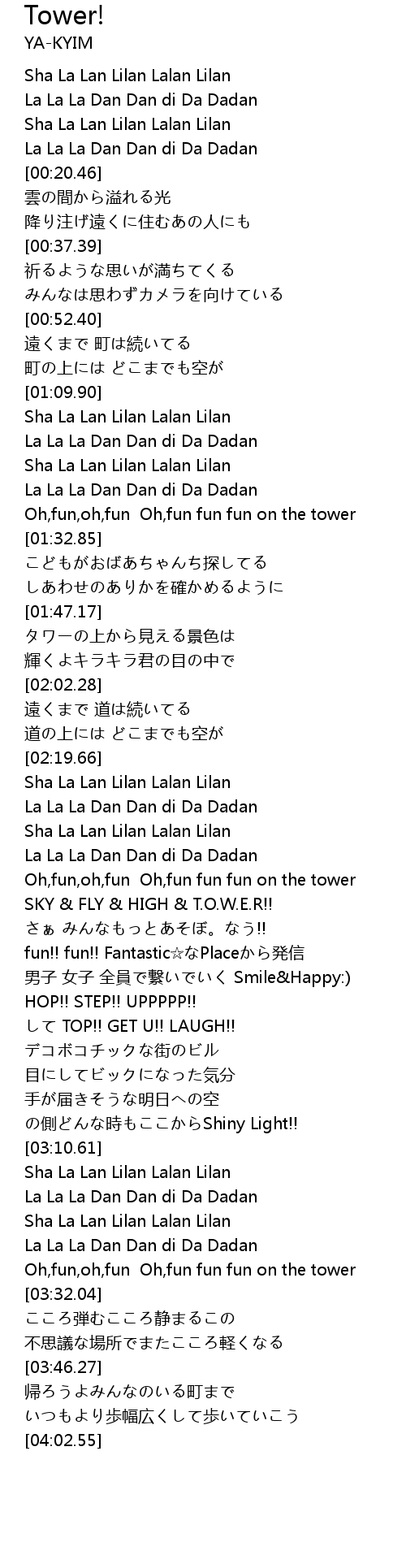 | [02:42.79] | SKY & FLY & HIGH & T.O.W.E.R!! |