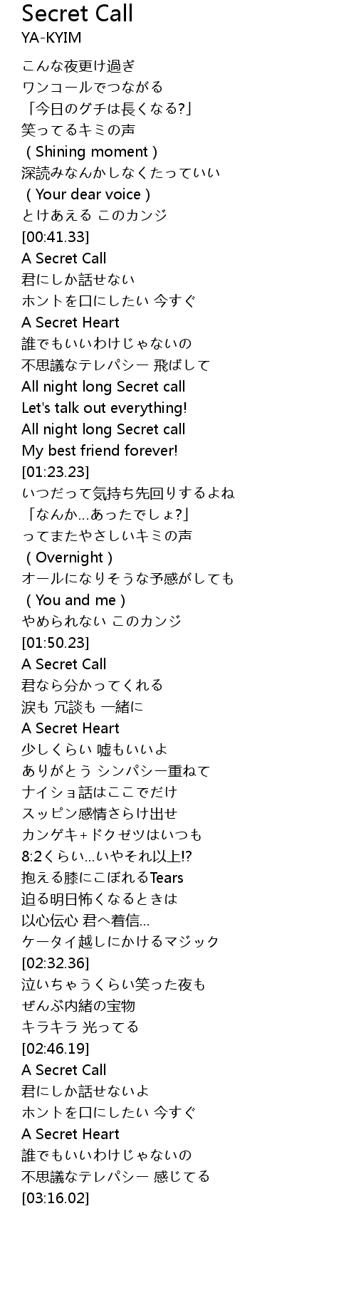 | [03:07.19] | 不思議なテレパシー 感じてる |