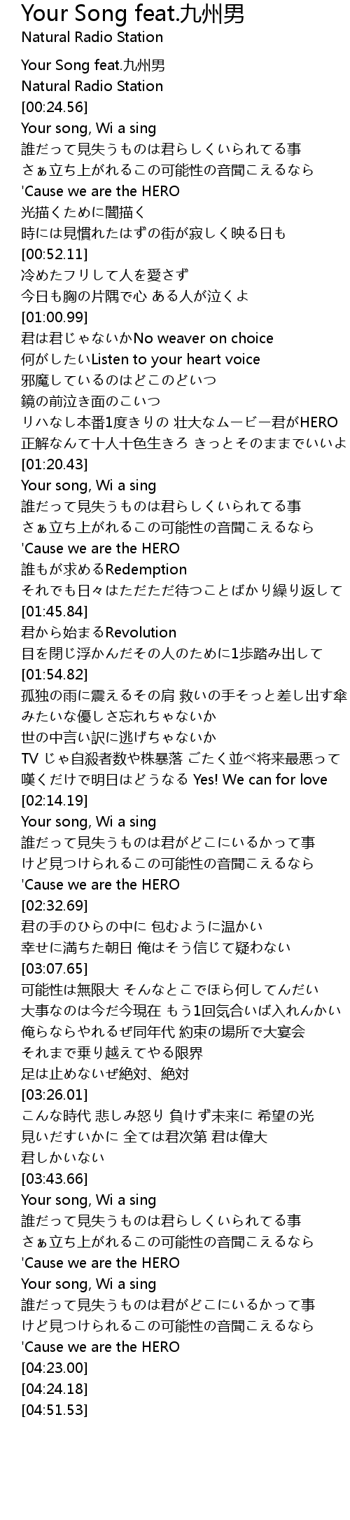 | [04:20.30] | 'Cause we are the HERO |