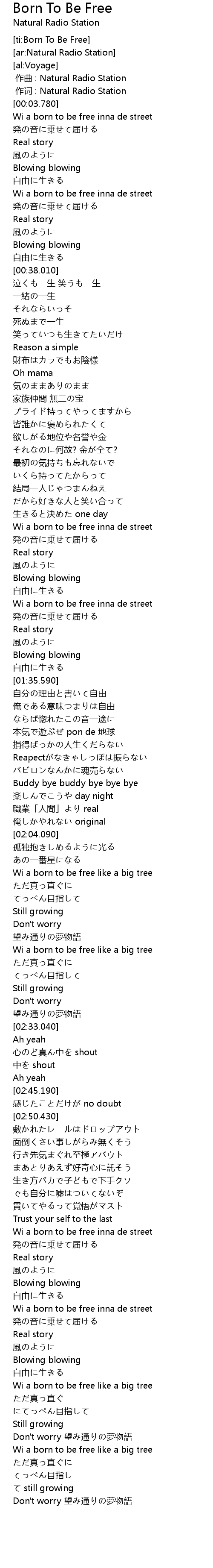 | [03:11.290] | Wi a born to be free inna de street |