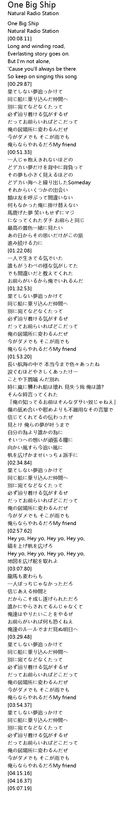 | [00:00.12] | One Big Ship |