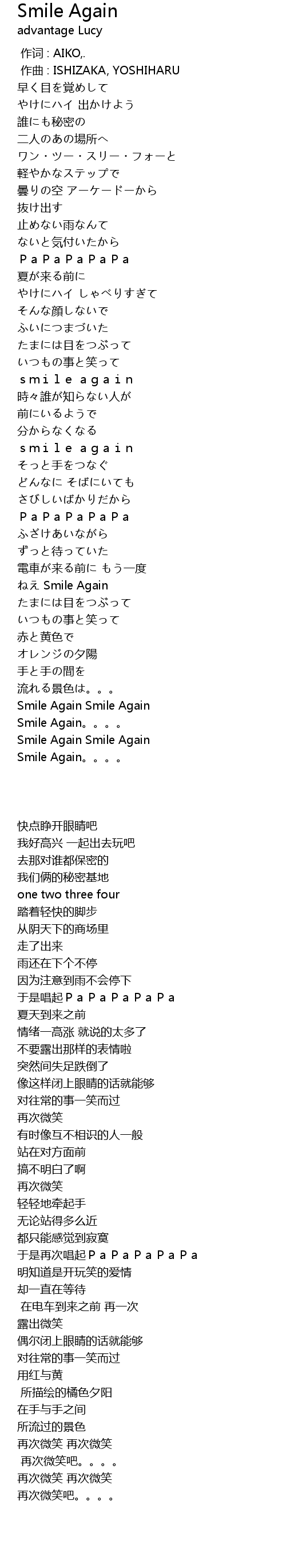 | [00:01.000] | zuo qu : ISHIZAKA, YOSHIHARU |