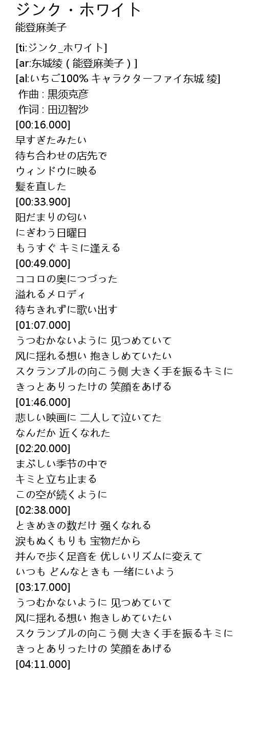 | [03:51.150] | スクランブルの向こう侧 大きく手を振るキミに |