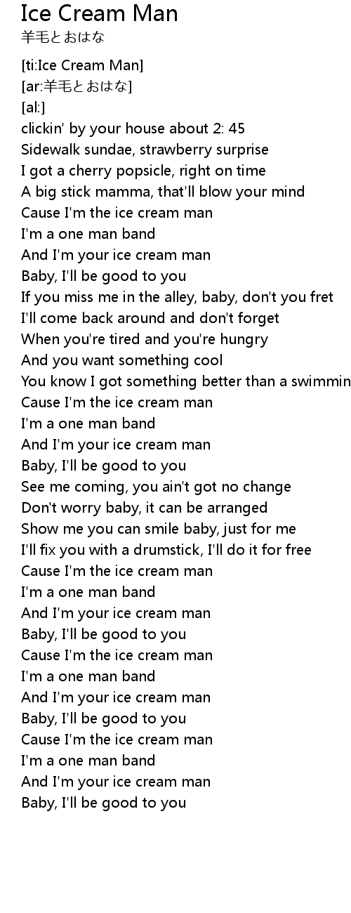| [00:51.12] | I got a cherry popsicle, right on time |