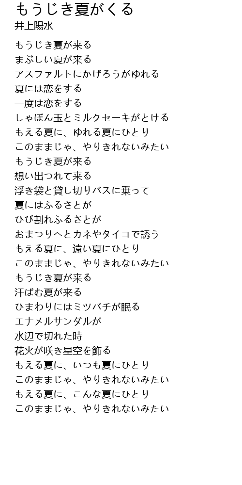 | [04:07.27] | もえる夏に、いつも夏にひとり |