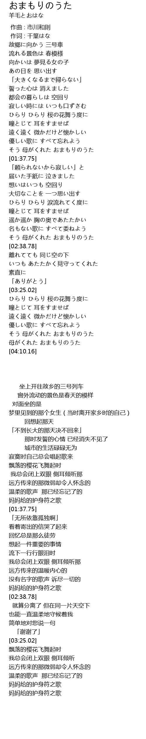 | [03:49.51] | そう 母がくれた おまもりのうた |