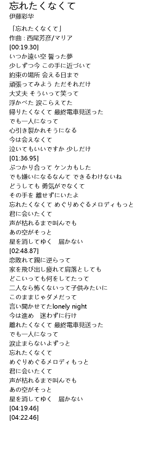 | [03:37.83] | 離れたくなくて 最終電車見送った |