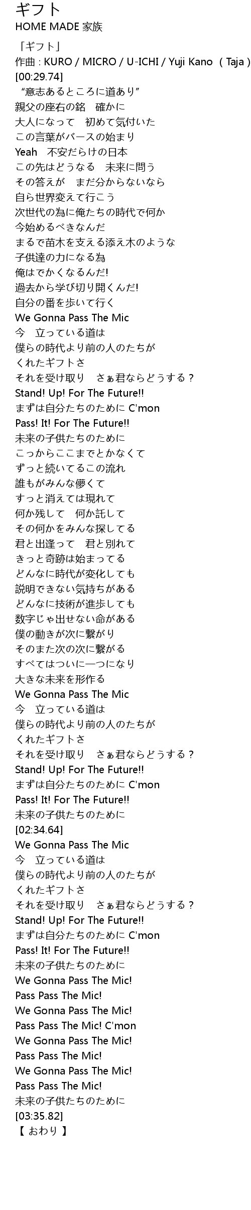| [00:01.74] | 「ギフト」 |