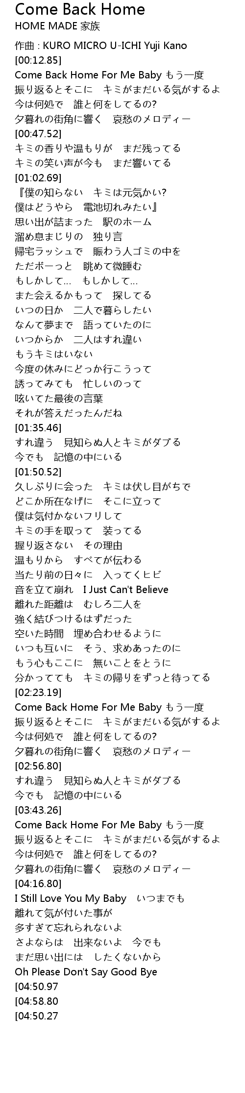 | [00:14.85] | Come Back Home For Me Baby もう一度 |