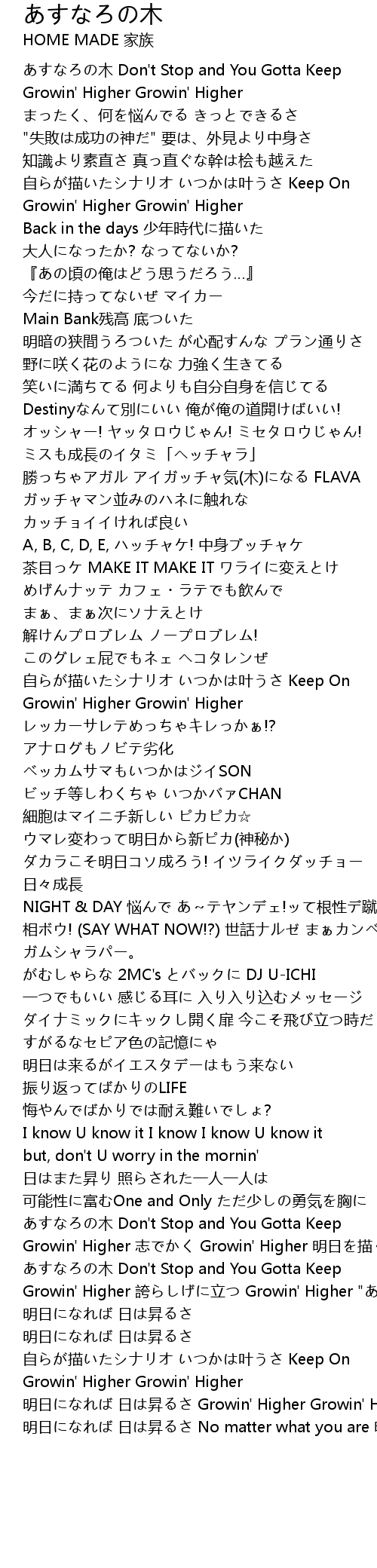 | Growin' Higher 誇らしげに立つ Growin' Higher "あすなろの木" | |