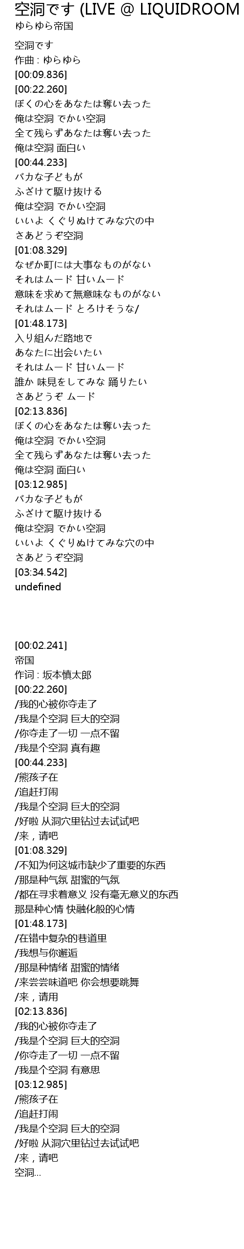 | [03:19.157] | 俺は空洞 でかい空洞 |