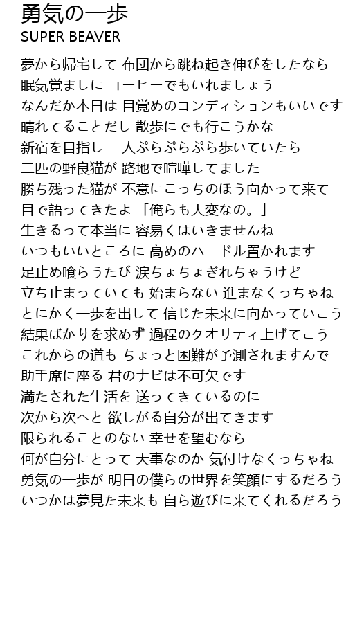 | 勇気の一歩が 明日の僕らの世界を笑顔にするだろう | |