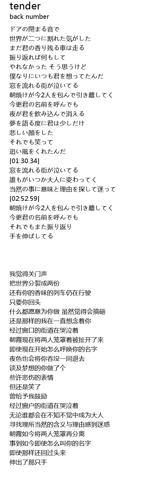 | Song | tender |