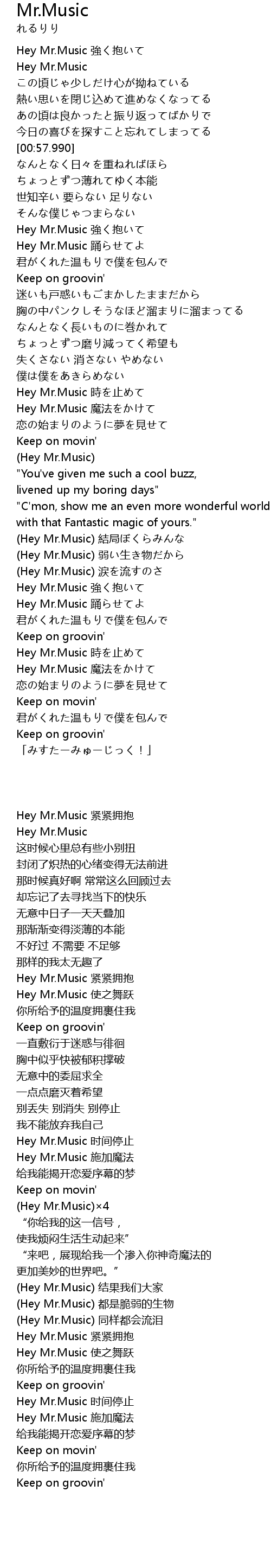 | [03:37.700] | Hey Mr. Music shí zhǐ |